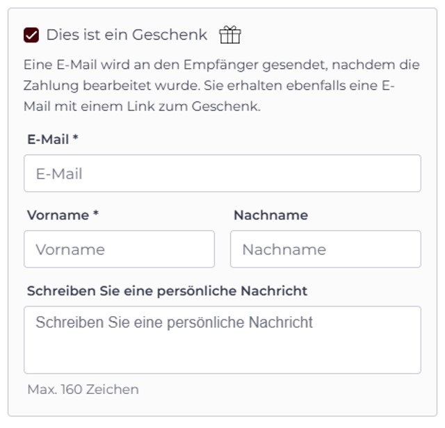 Im Kaufprozess setzt du den Haken bei „Das ist ein Geschenk“ und trägst die E-Mail-Adresse des Beschenkten ein.